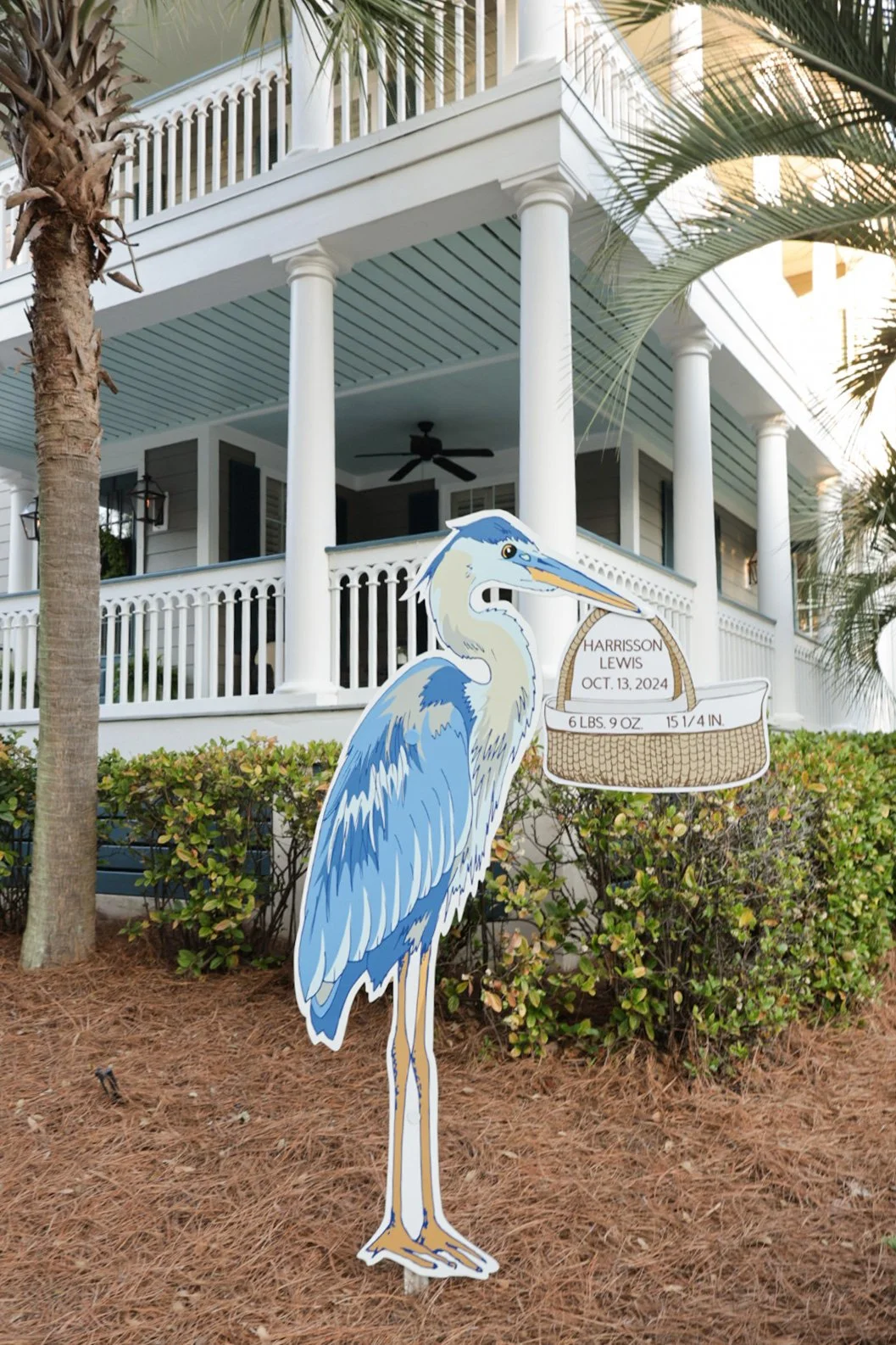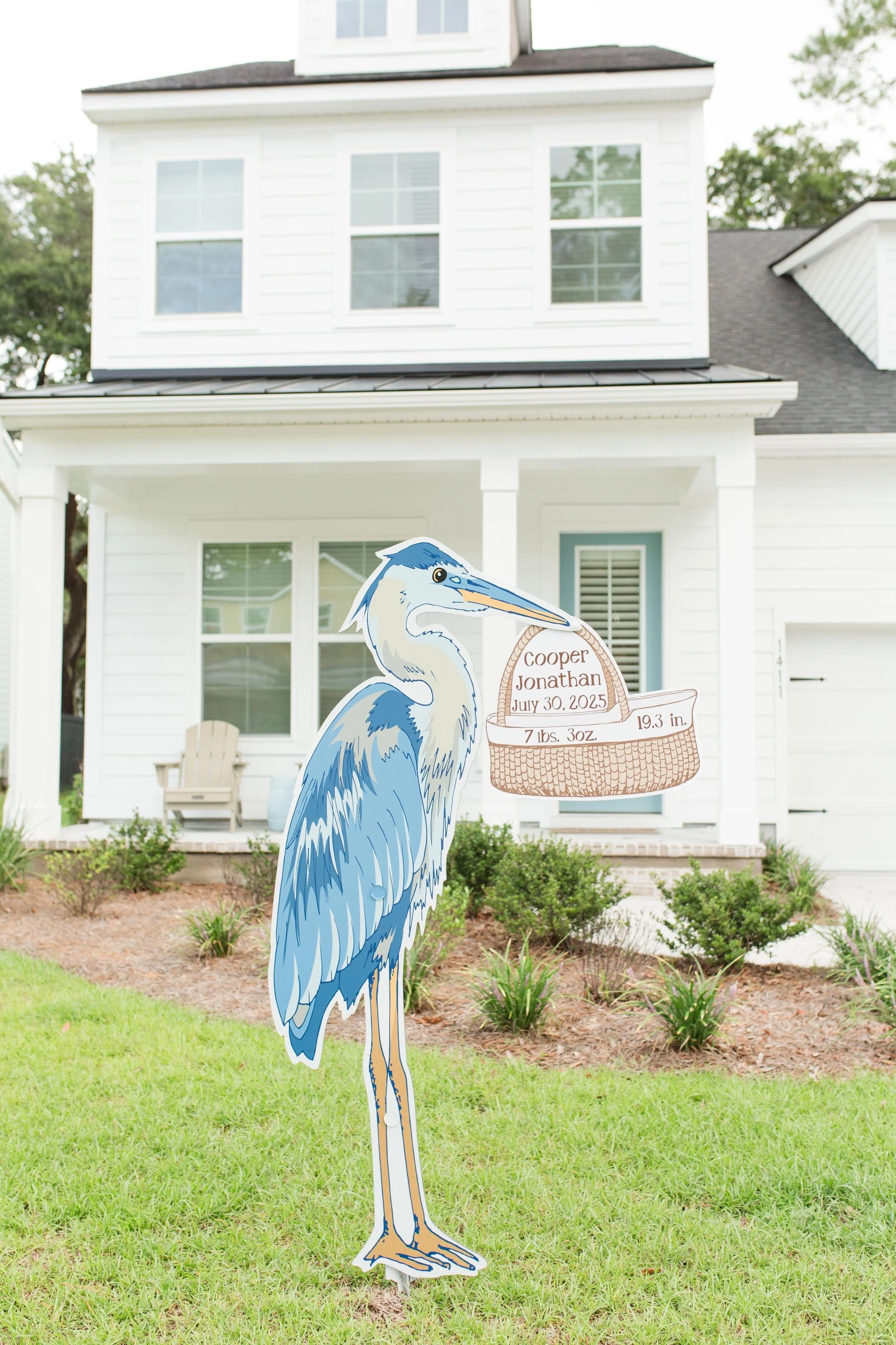 We aren’t your average stork announcement! What’s Included: A bird of your choice for 7 days (Example: Tuesday - Tuesday), custom sweetgrass Moses basket with your baby’s details that will be left for you to keep. Included, up-light for nighttime viewing, pickup and delivery within 10 miles of 29407!